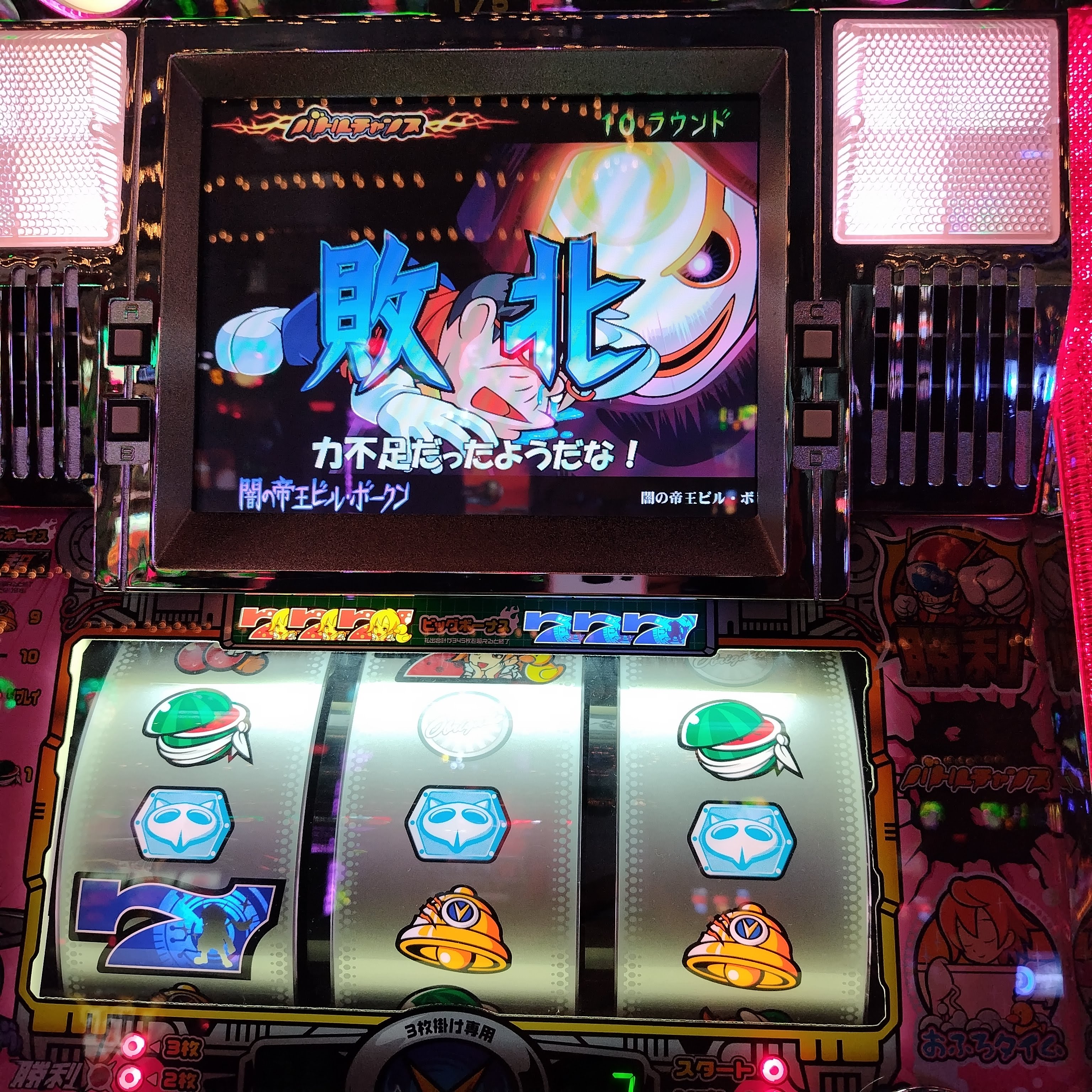 同じ神田にあった、毎月5日が激アツだった今は亡き「あたりや」でこの台の設定6を打ったことがありました。何枚くらい出たか覚えてないんですが当然のようにフツーに勝って、「高設定なら素直に出る」というのが、私が大嫌いだった末期の4号機たち(吉宗とか番長とかアラジン2エボリューションとか)とは違ってて、まだ4号機にしがみついている人が多いなか私は「5号機最高じゃないか」と思ってたのをおぼえています。