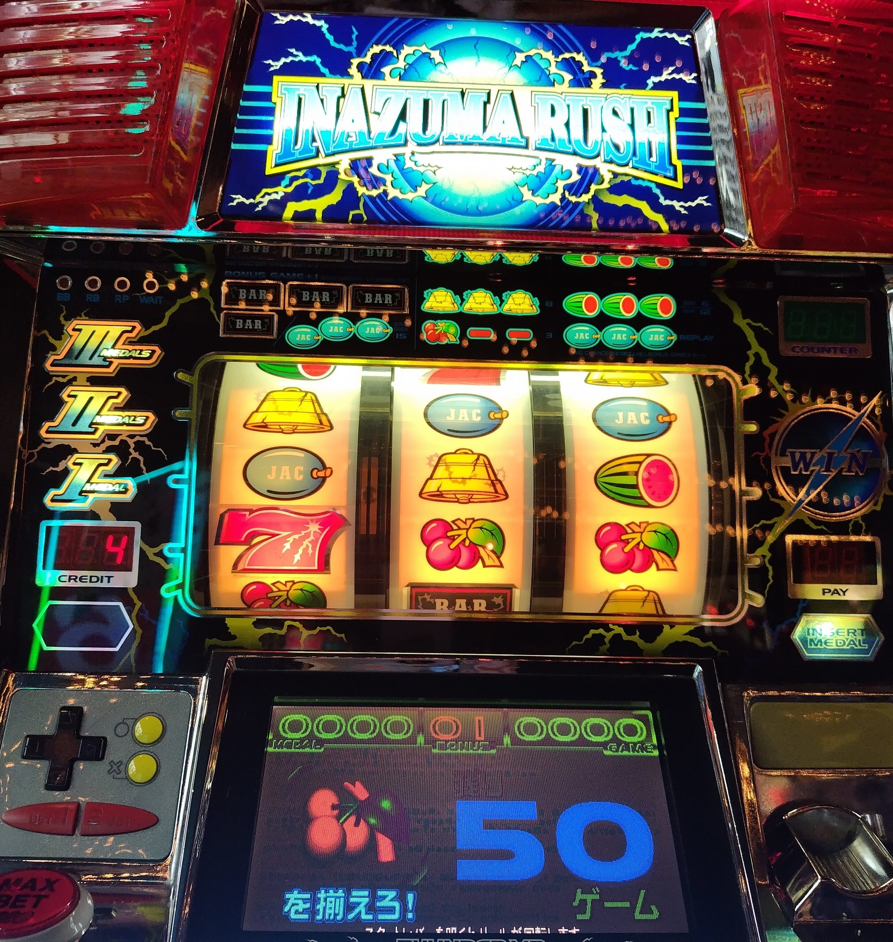 ゲーム性についてはその記事に書いたので参照していただきたいですが、BIGについてくる数ゲームのチャンスゾーン中にできるだけ小役を引いてより多く払い出しを受ければAT(イナズマラッシュ)に突入(チャンスゾーン中に22枚以上の払い出しを受ければ確定、それ未満は抽選)、イナズマラッシュ中はミッション達成で一撃数万枚もありえる「スーパーイナズマラッシュ」への突入を目指す、というもの。設置6はボーナス確率もAT突入率も破格で、「どうすれば負けるの?」っていうくらいの圧倒的出玉性能。