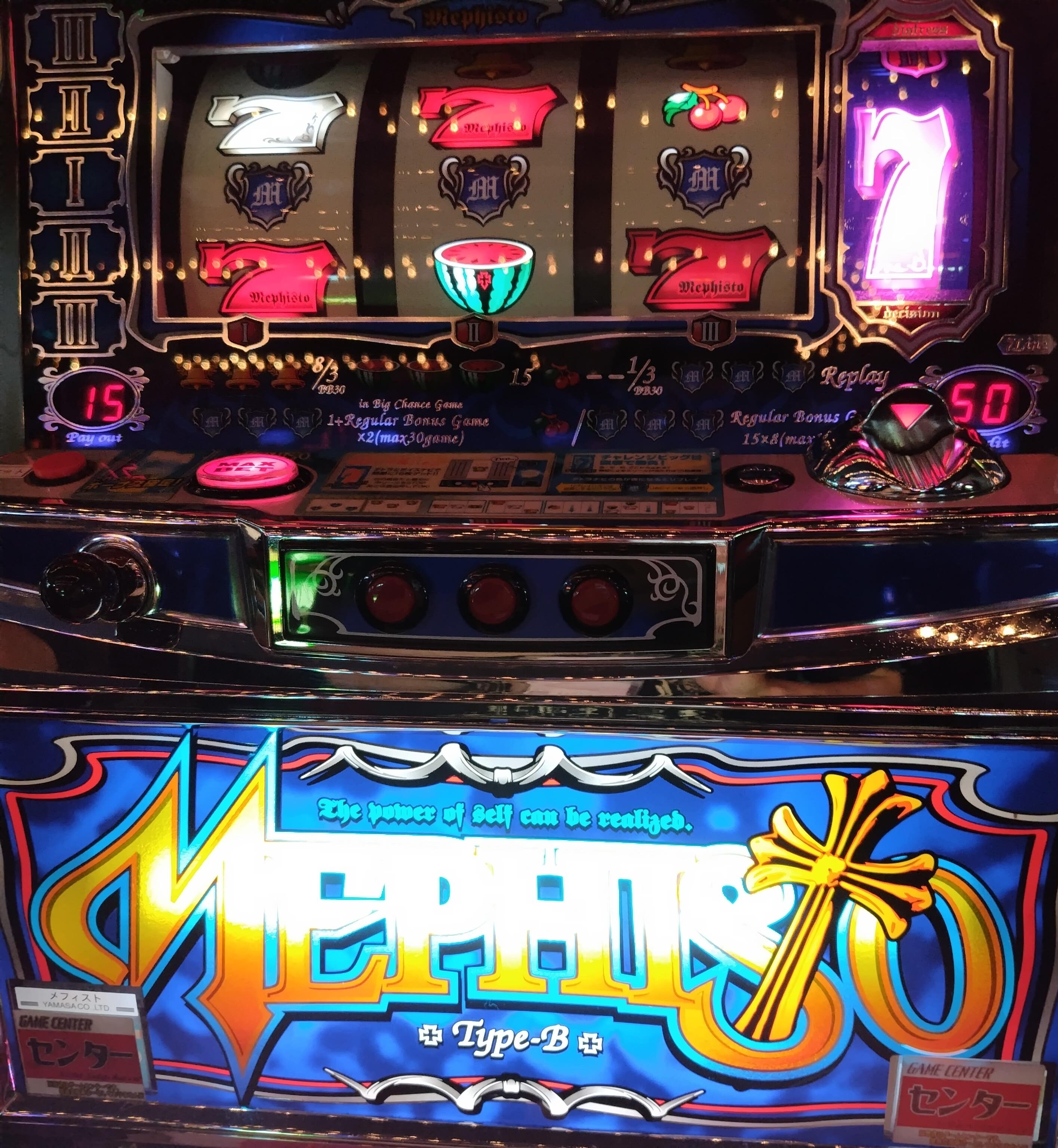 このあと、これも大好きで打ち込んだ、山佐のテトラリール機最高傑作、2003年に出たストック機「メフィスト」を擦り、何度か当たってカッコよすぎるボーナスサウンドを堪能し